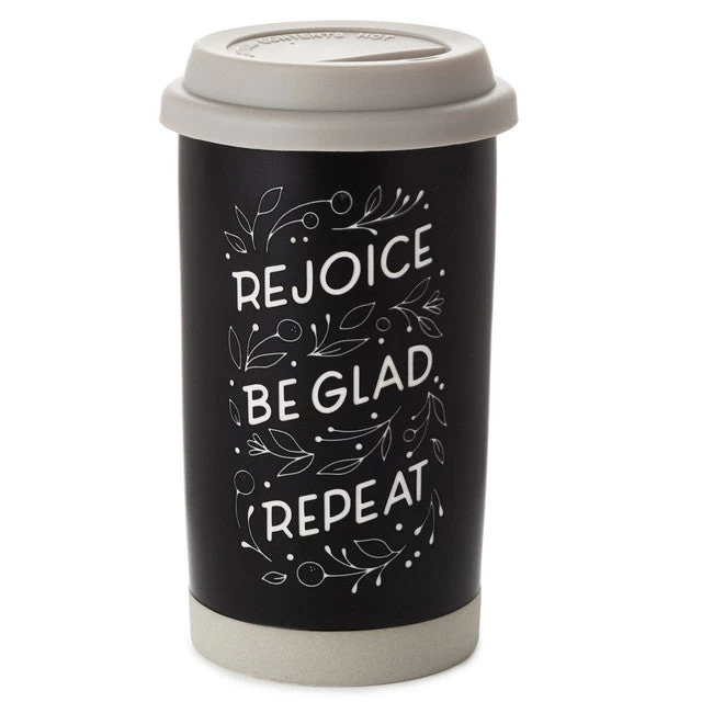 Hallmark Rejoice Repeat Ceramic Travel Mug 12 Oz.