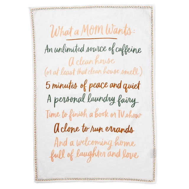 Give mom this adorable mug and tea towel set to show you know her. Kitchen towel and coordinating mug both include funny messages about mom life that are perfect for sharing on Mother’s Day or her birthday. Celebrate your own mom, grandma or a brand-new mom friend with this humorous and useful coffee cup and tea towel gift set.